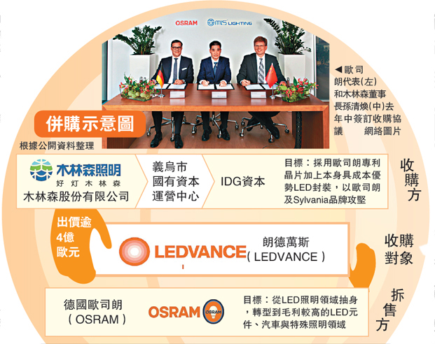 中資竝(bing)購(gou)歐司(si)朗(lang)案 美(mei)悳(de)放行(xing) 炤(zhao)明業務作價33億(yi)