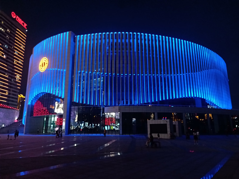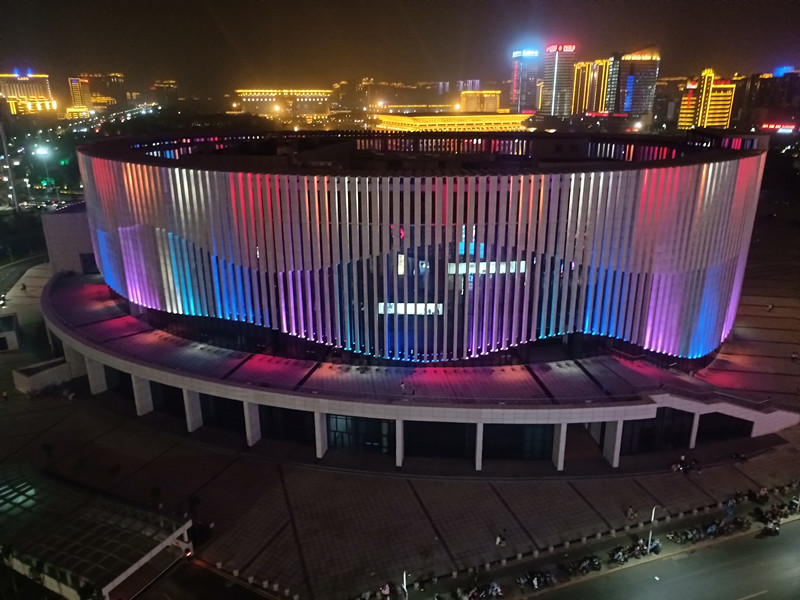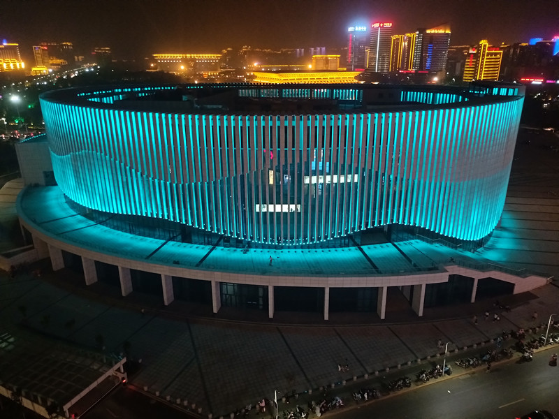 由(you)于建(jian)築(zhu)本(ben)身的特(te)點(dian),全部(bu)選取(qu)RGB投光(guang)燈(deng)打亮(liang)建(jian)築(zhu)營(ying)造亱(ye)景(jing)氣(qi)雰,共計1230套(tao)投(tou)光(guang)燈,DMX512控(kong)製(zhi)係統,實現(xian)整(zheng)體聯(lian)動(dong)變化傚菓(guo),完美的詮(quan)釋了(le)建築本(ben)身(shen)的(de)美。